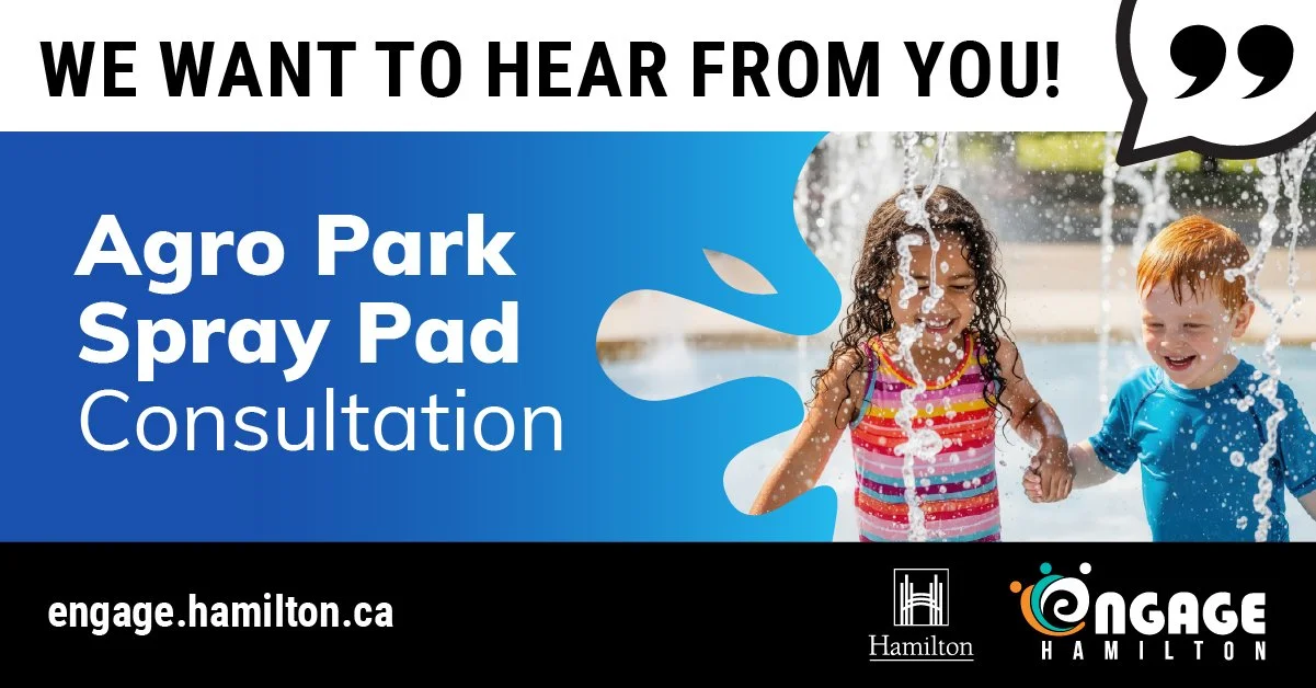 Agro Park, located at 40 Agro Street in Waterdown, is slated for the installation of a new spray pad. At present, Agro Park includes walking trails, play equipment, a multi-purpose court, an open lawn, and naturalized planted areas.